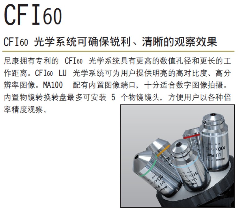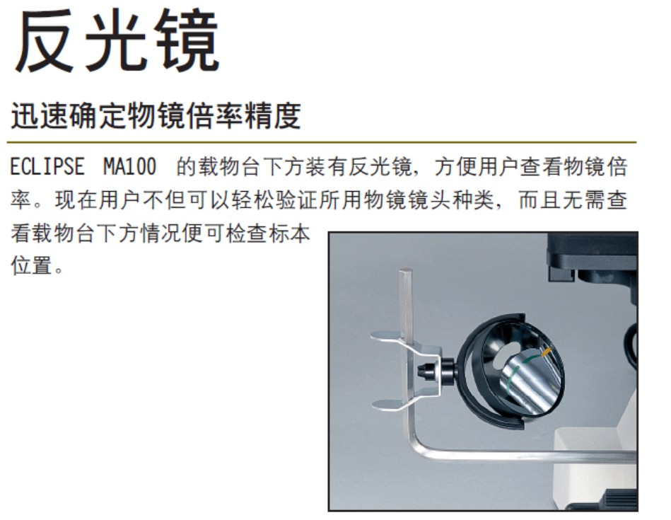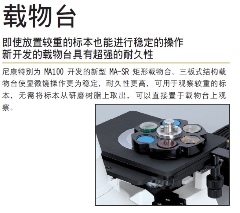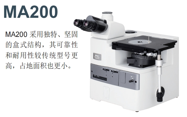 eclipse ma系列是一款应用明场或简易偏光照明技术,专为反射照明观察而设计的体积较小的倒置显微镜。ma100 占地面积小,坚固耐用、操作简单,